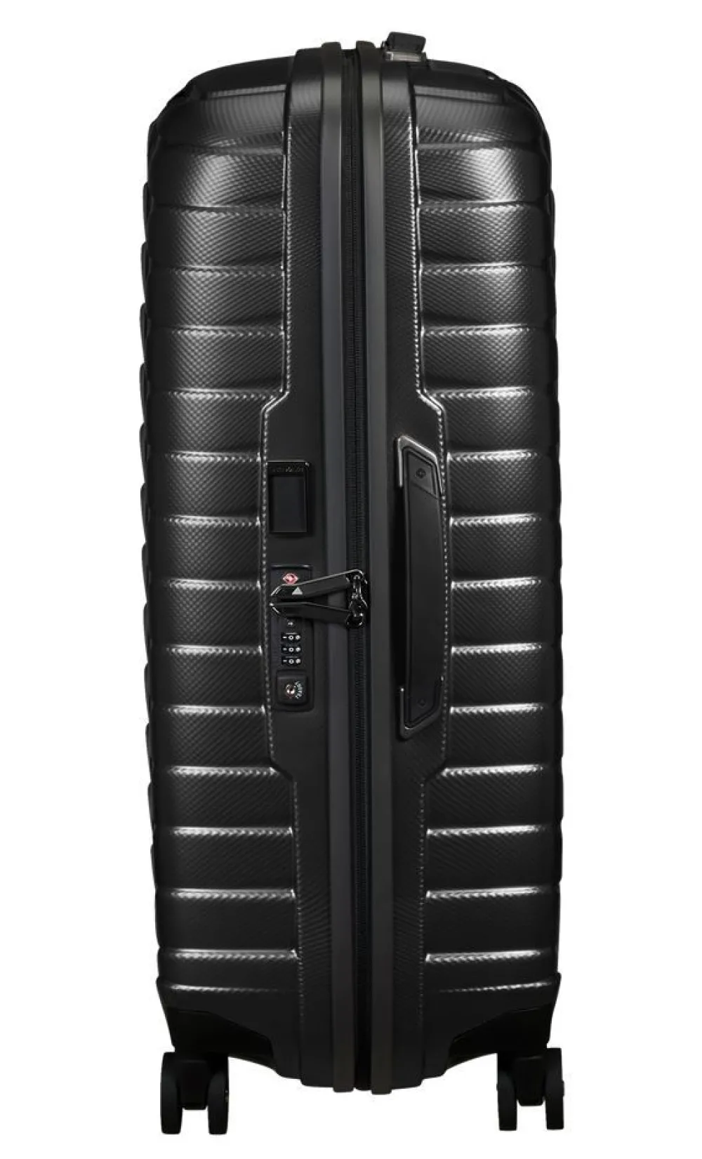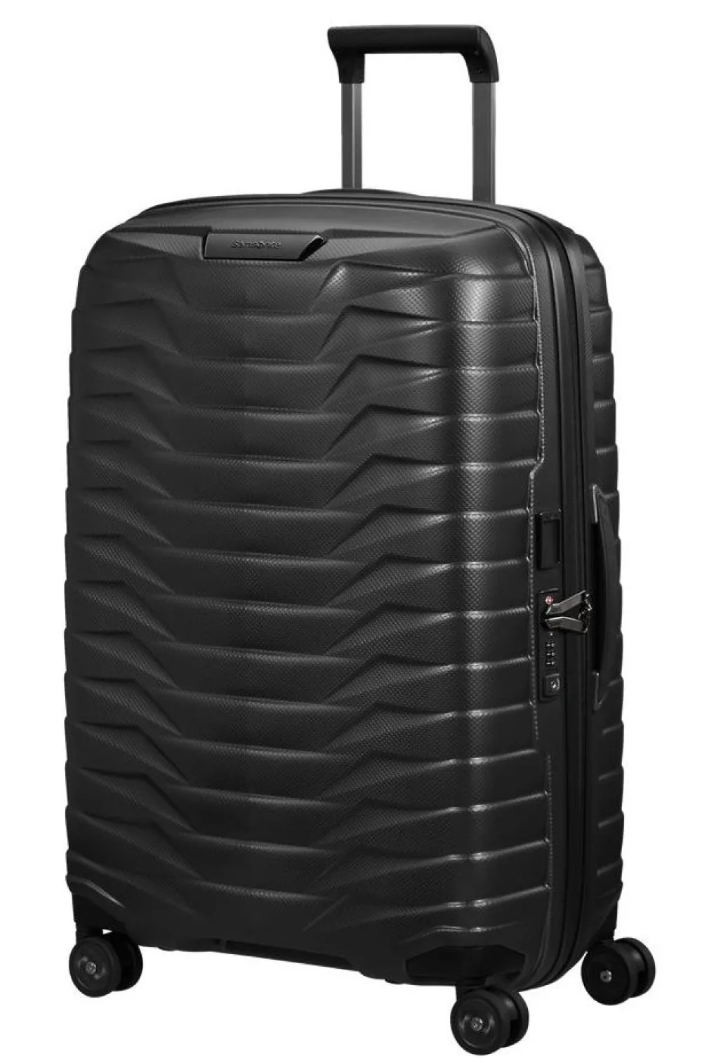 Trolley medio 69cm Samsonite Proxis. Trolley realizzato in robusto Roxkinâ„¢, 4 ruote piroettanti gemellari per la massima manovrabilità . Carrello di traino telescopico bitubo con push botton, chiusura a tripla combinazione con sistema TSA per gli Stati Uniti. Interno foderato con divisorio e nastri per bloccare l’abbigliamento. Tag ID integrato e retrattile. Garanzia 10 anni.