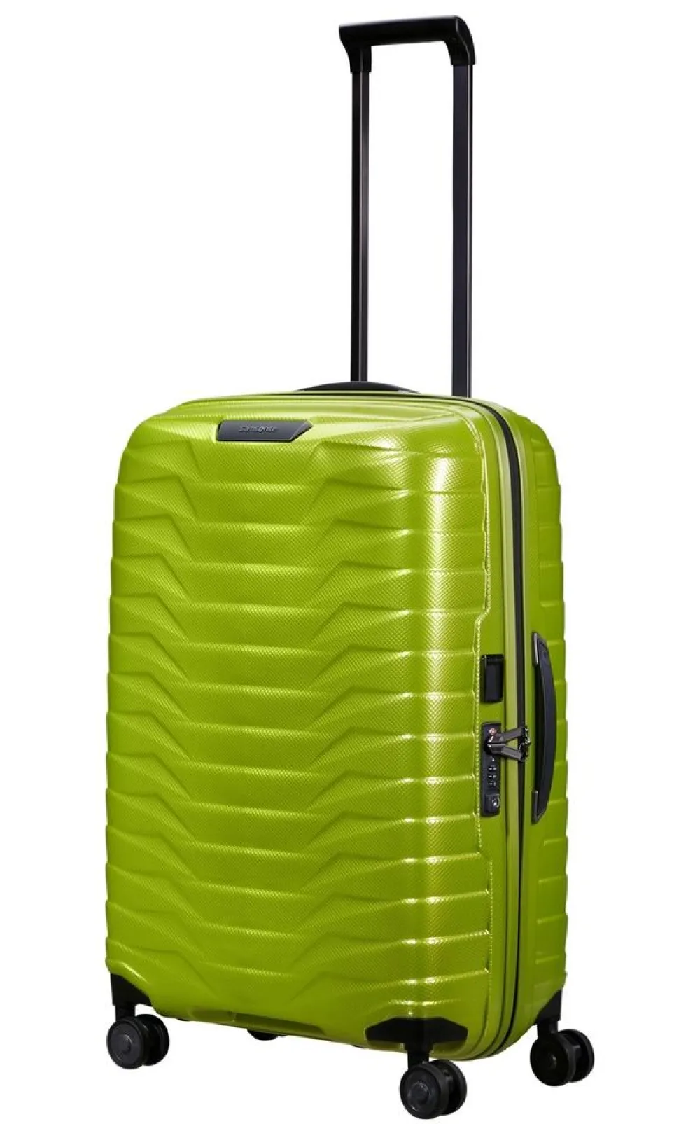 Trolley medio 69cm Samsonite Proxis. Trolley realizzato in robusto Roxkinâ„¢, 4 ruote piroettanti gemellari per la massima manovrabilità . Carrello di traino telescopico bitubo con push botton, chiusura a tripla combinazione con sistema TSA per gli Stati Uniti. Interno foderato con divisorio e nastri per bloccare l’abbigliamento. Tag ID integrato e retrattile. Garanzia 10 anni.