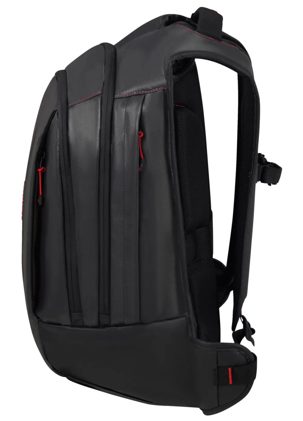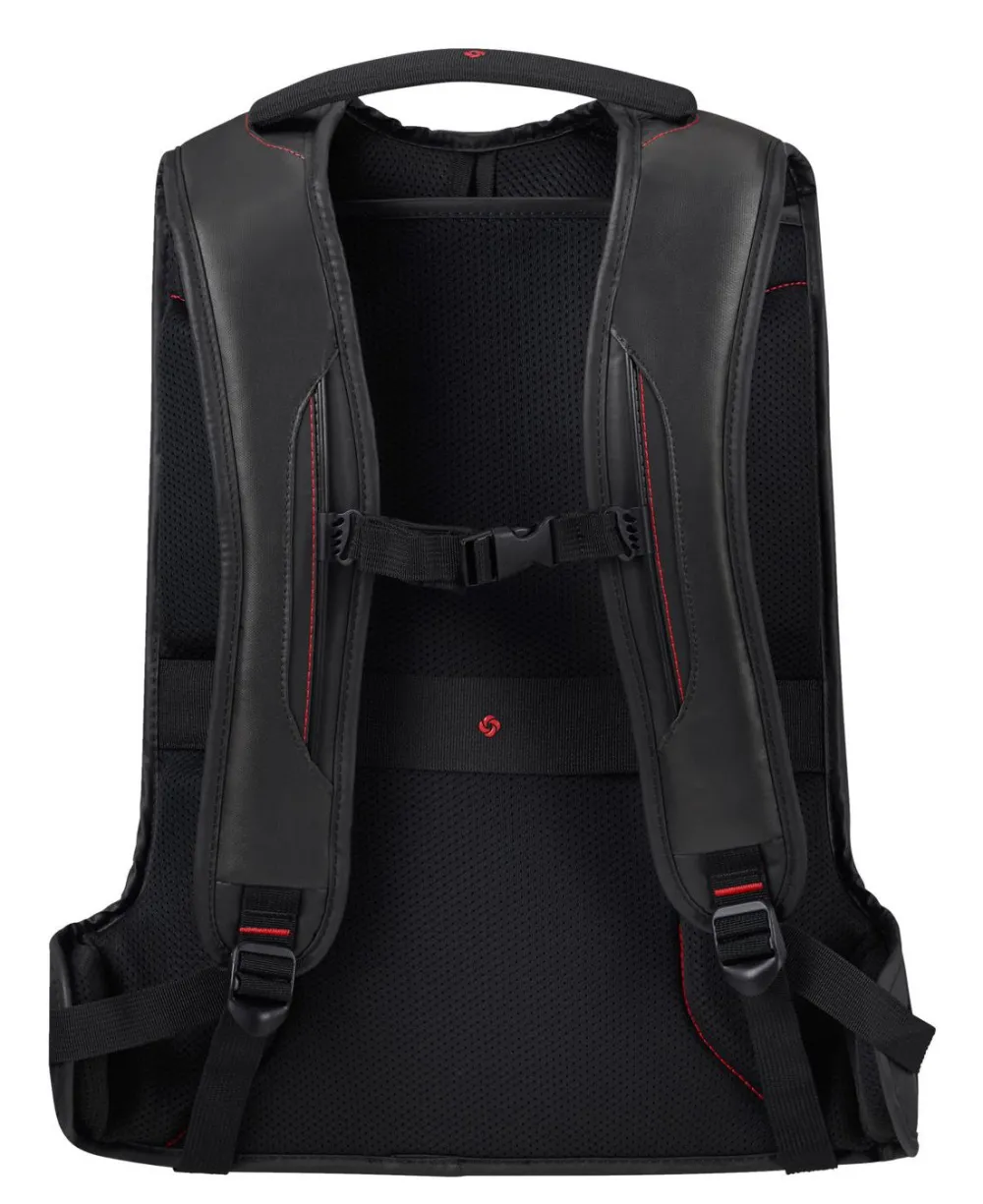 Zaino L 17,3″ Samsonite Ecodiver. Zaino realizzato in robusto ,ateriale gommato 100% riciclato e resistente all’acqua, confortevole maniglia superiore, spallacci gommati e schienale traspirante, ampia tasca principale con comparto laptop 17,3″ e tablet. Tasca frontale chiuse da zip, con organizzazione interna. Cintura sternale regolabile in altezza. Passante asta trolley.