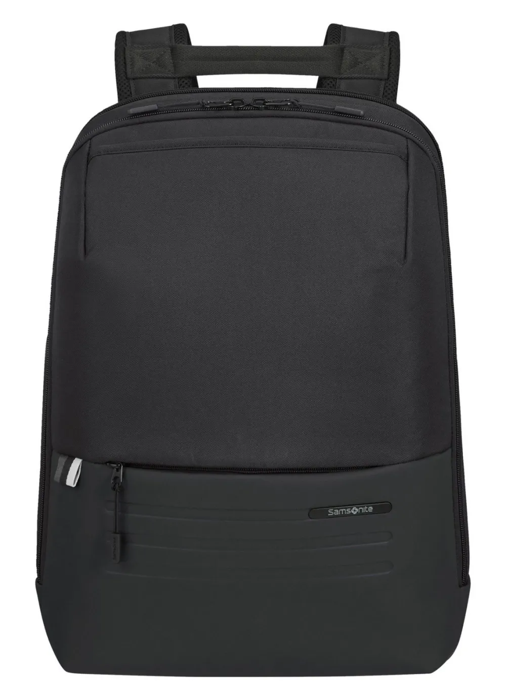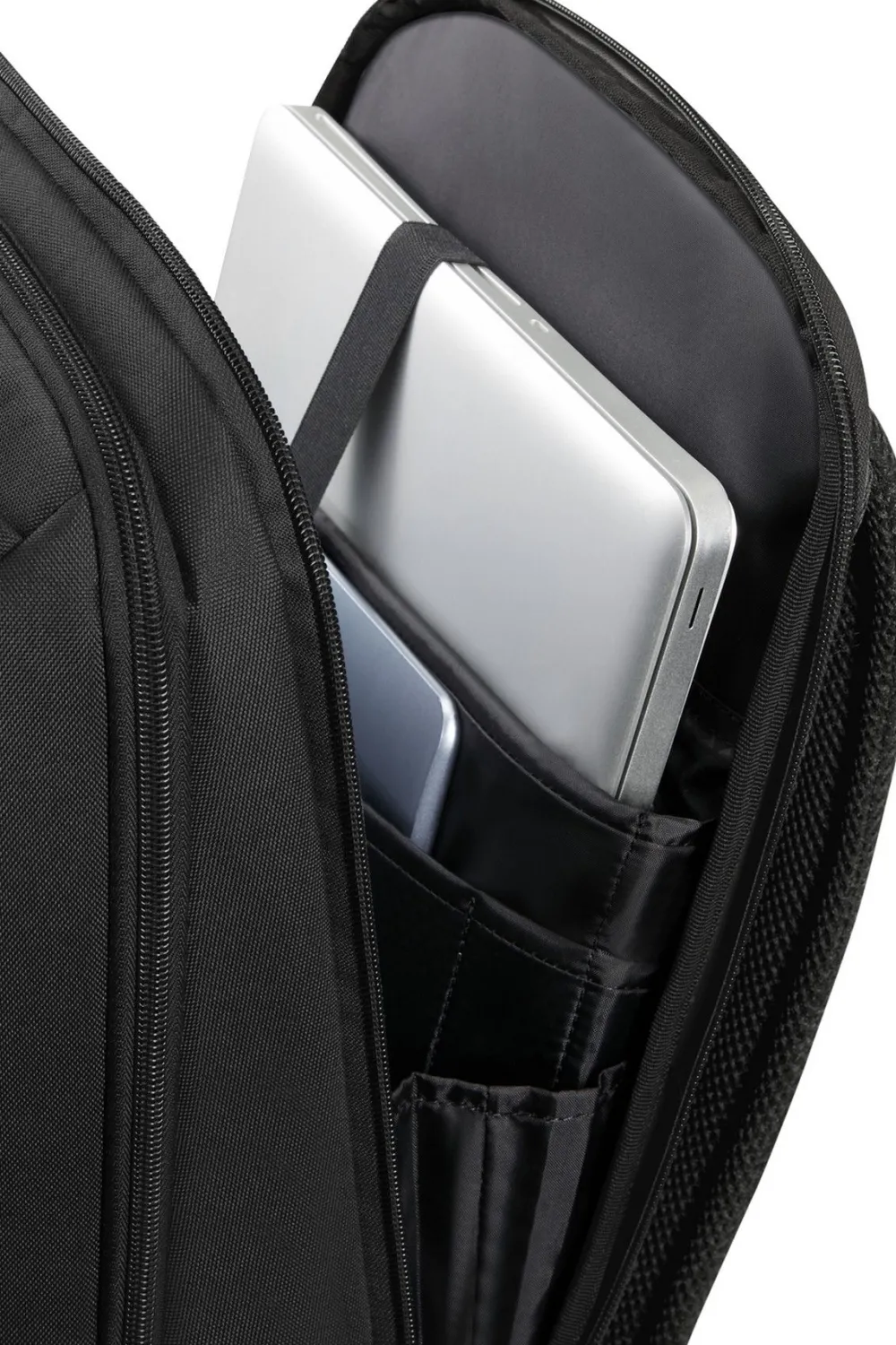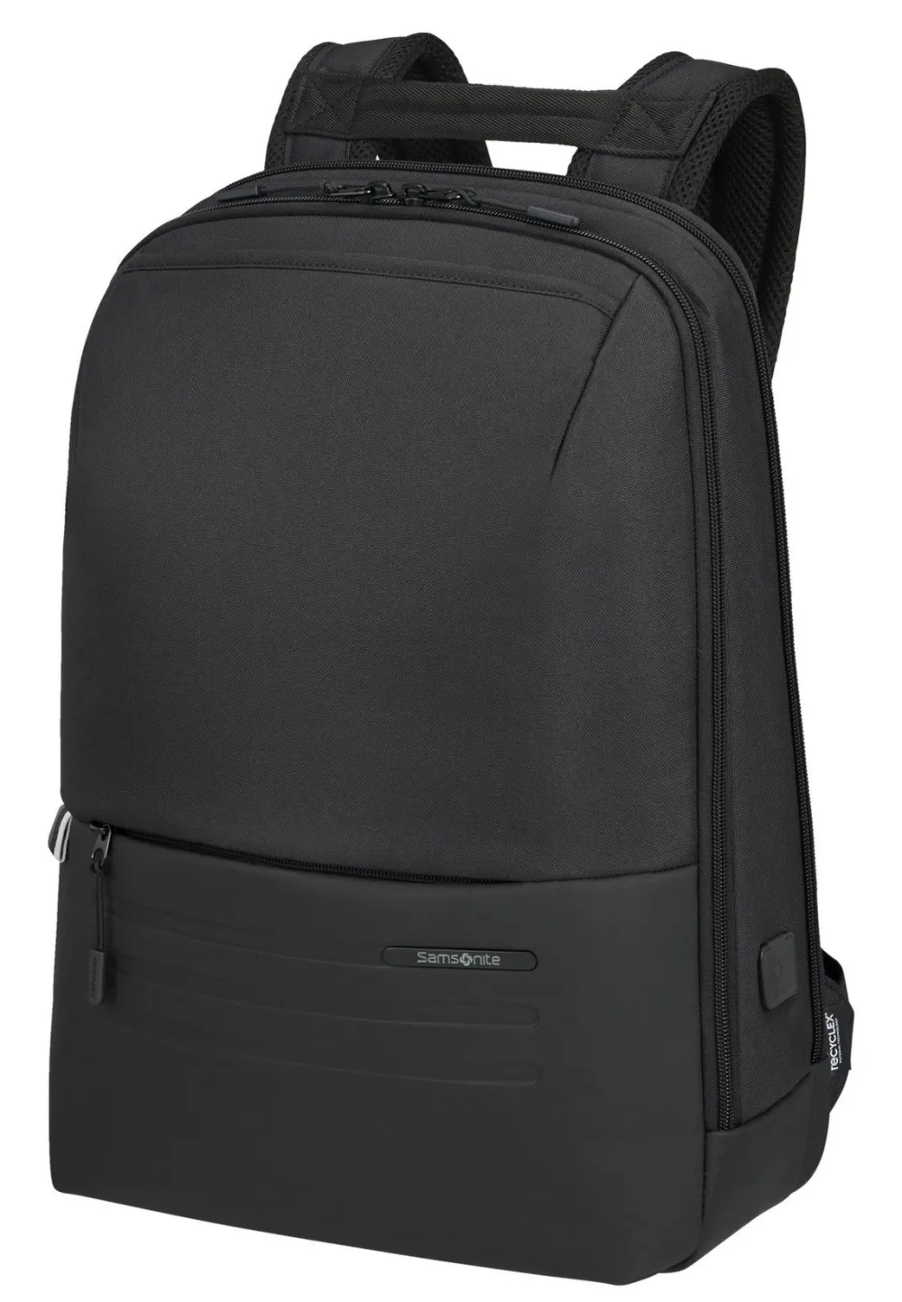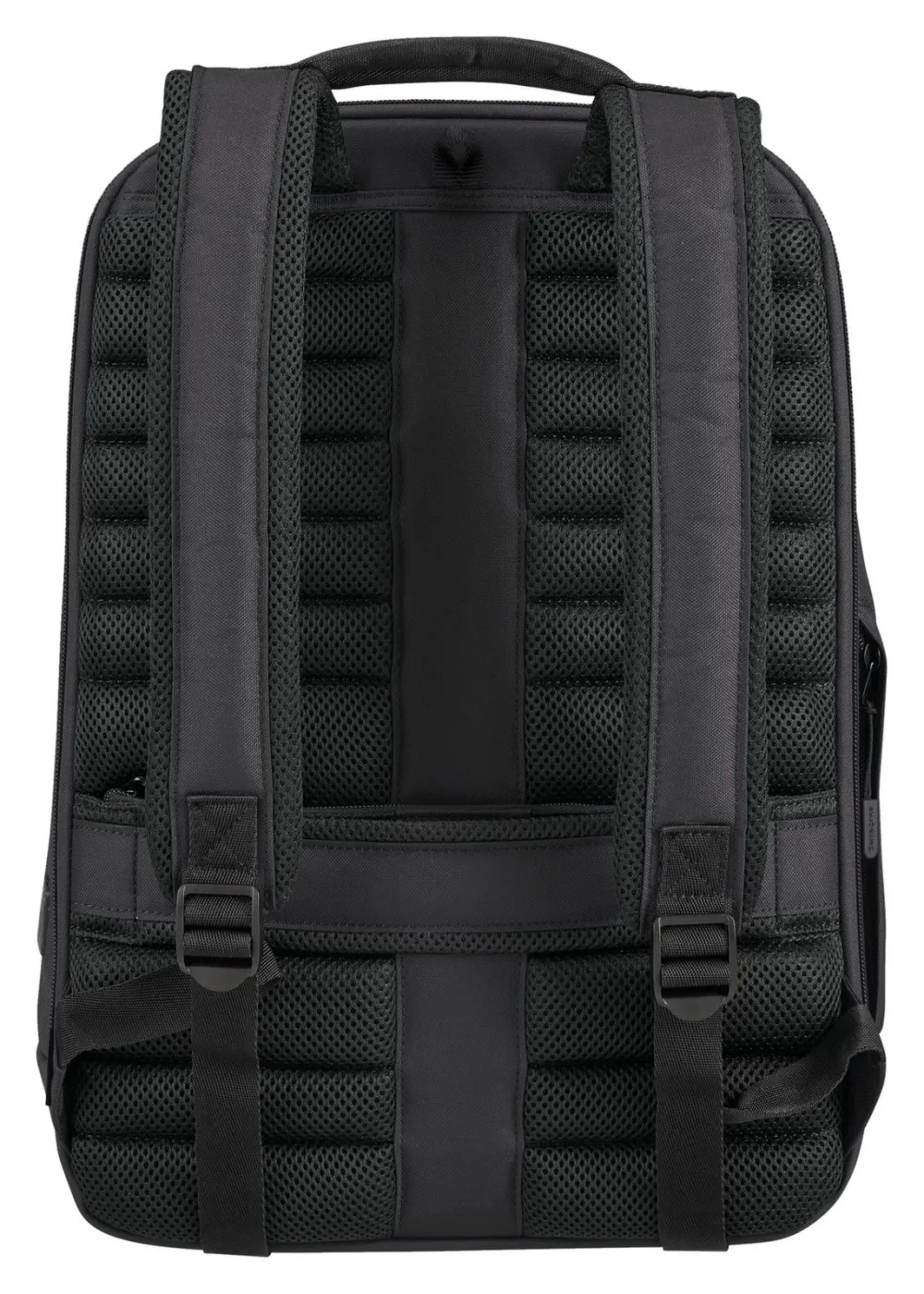 Zaino lavoro porta pc 15,6″ Samsonite Stackd Biz. Realizzato in robusto poliestere riciclato, spallacci e schienale gommati e traspiranti. Due ampie tasche principali chiuse da zip con vano porta pc 15,6″ e iPad, tasca frontale. Maniglia superiore. Passante asta trolley posteriore. Presa USB di ricarca integrata. Logo frontale.