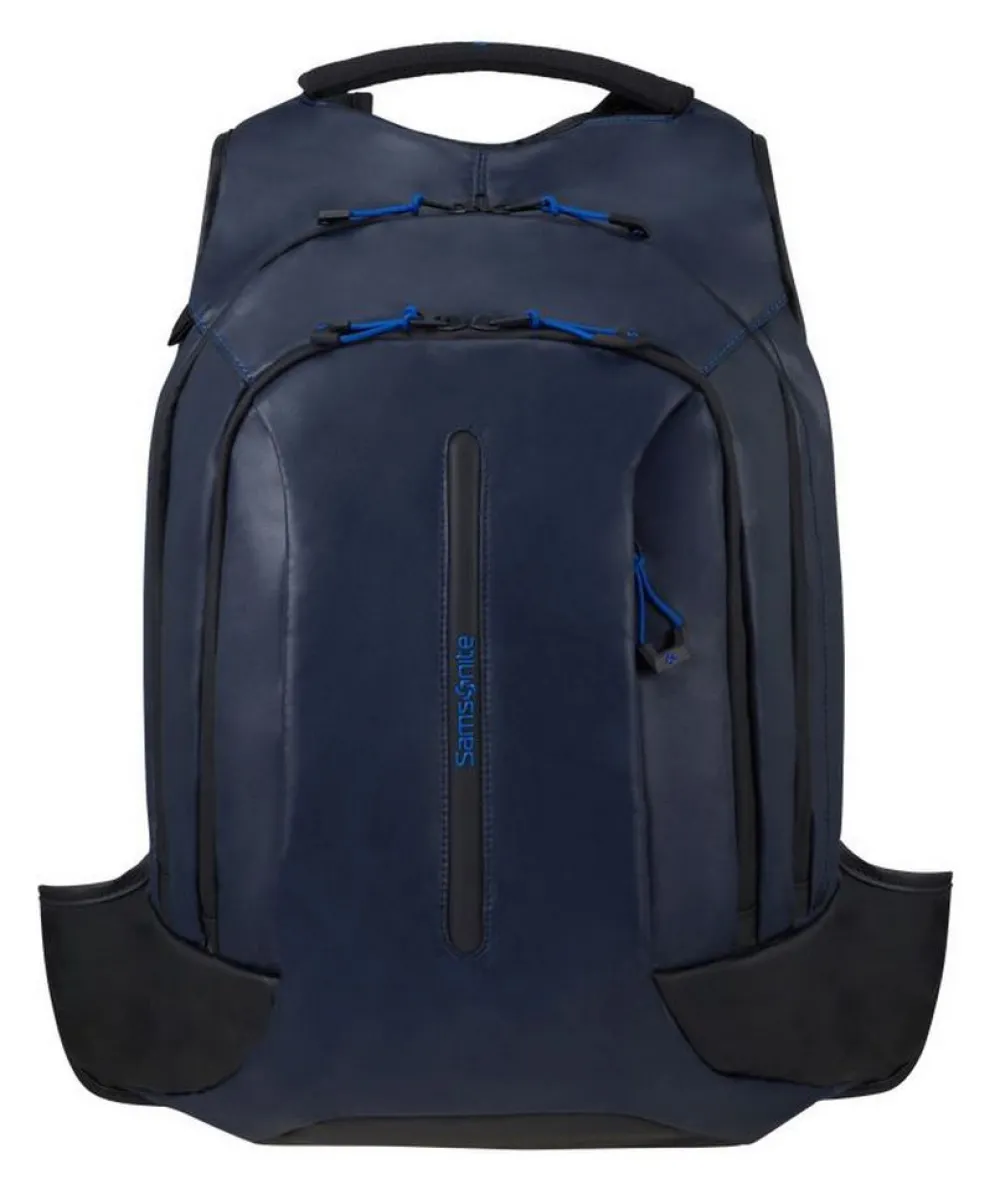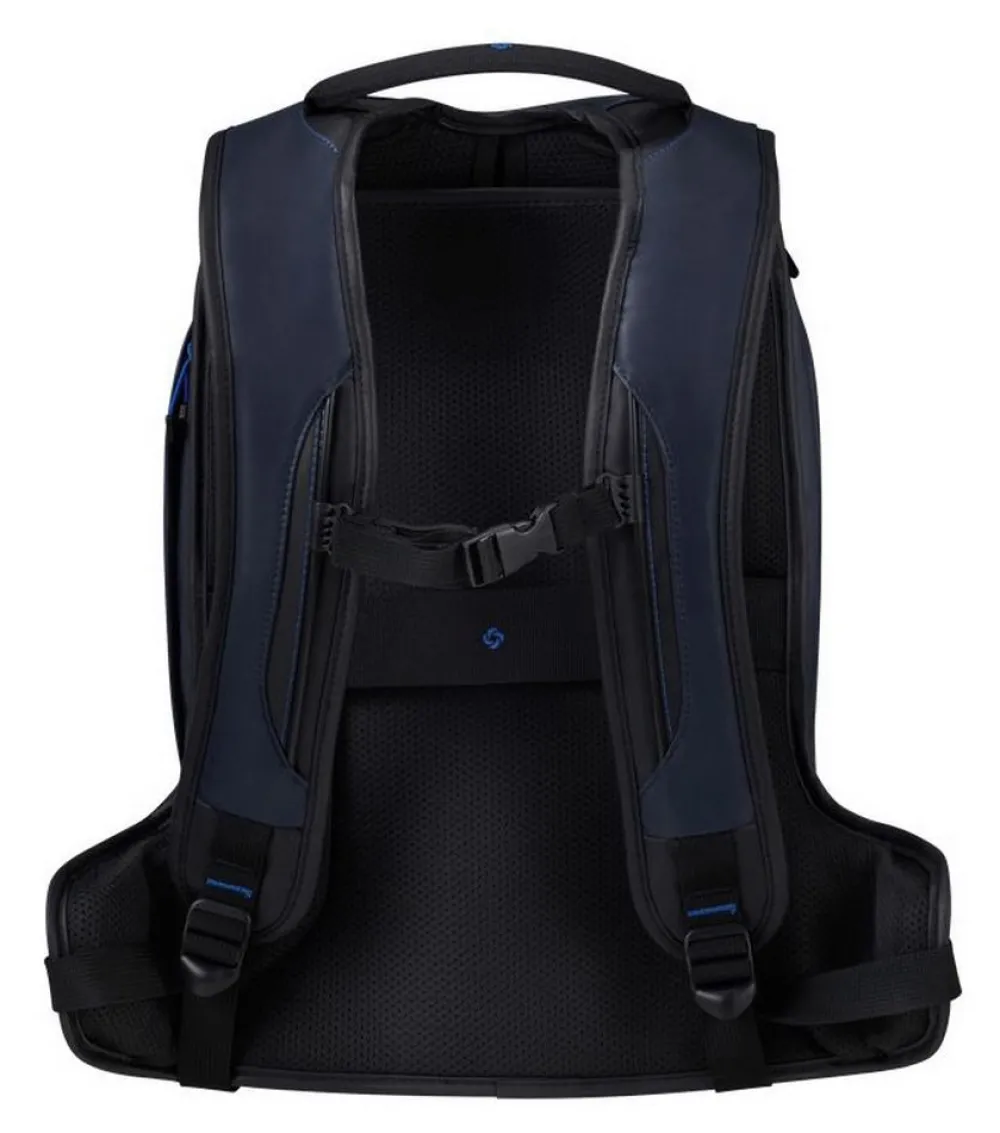 Zaino 15,6″ Samsonite Biz2Go. Realizzato in robusto poliestere riciclato, spallacci e schienale gommati e traspiranti. Tasca principale con vano documenti. Tasca posteriore porta pc 15,6″ e tablet. Due tasche frontali chiuse da zip e due tasche laterali per piccoli oggetti. Maniglia superiore gommata per il massimo confort. Cintura di blocco sternale, regolabile in altezza. Presa di ricarica USB laterale integrata. Passa asta trolley sullo schienale. Garanzia 2 anni.