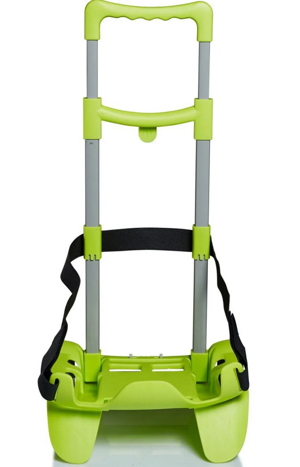 Carrello Trolley per zaino scuola Seven BE BOX. Carrello pratico, leggero e comodo per trasportare il Vostro zaino scuola. Pieghevole per il minimo ingombro nei periodi di non utilizzo. Lo zaino rimane saldo nel carrello, grazie agli elastici di contenimento laterali.
