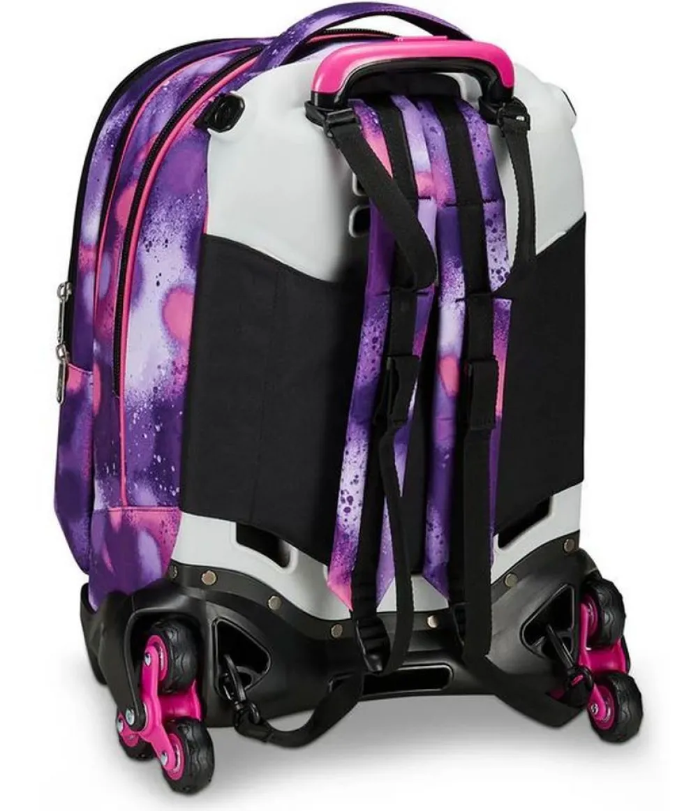 Trolley scuola Seven Jack 3 ruote Detach . Zaino realizzato in robusto poliestere, schienale imbottito e rivestito in tessuto, spallacci imbottiti e traspiranti. Lo zaino Jack di Seven può essere comodamente sganciato dal carrello di traino in poche semplici mosse, per la pulizia o per la portabilità a zaino. Il carrello di traino è rinforzato con push botton, il fondo rigido. Ampia tasca principale e tasca frontale chiuse da zip. Il Crossover System consente di trascinare il trolley senza sporcare gli spallacci: quando solleverai la barra telescopica di traino gli spallacci si alzeranno in maniera automatica! L’innovativo sistema a 3 ruote consente di superare anche i gradini, senza sollevare lo zaino!