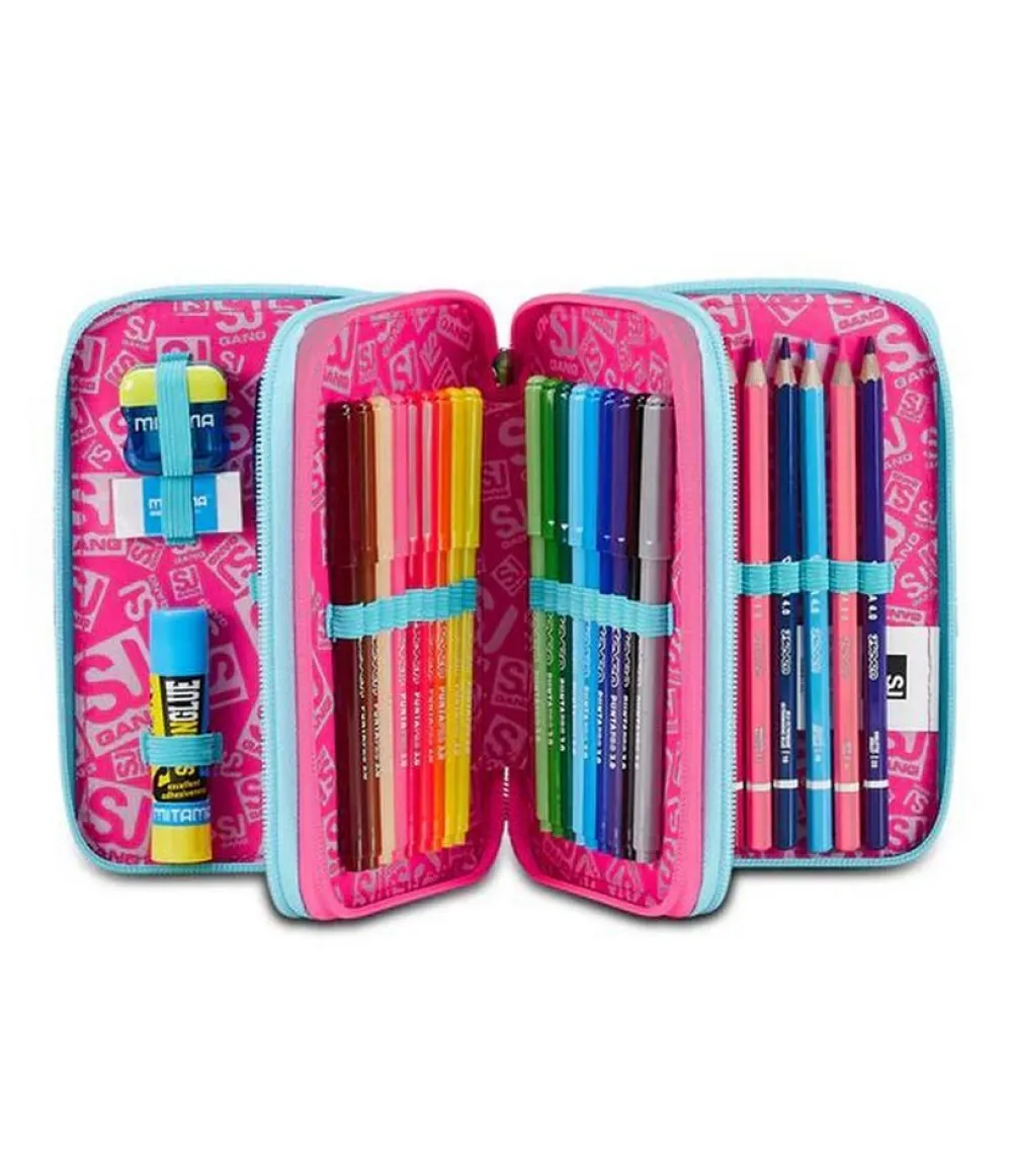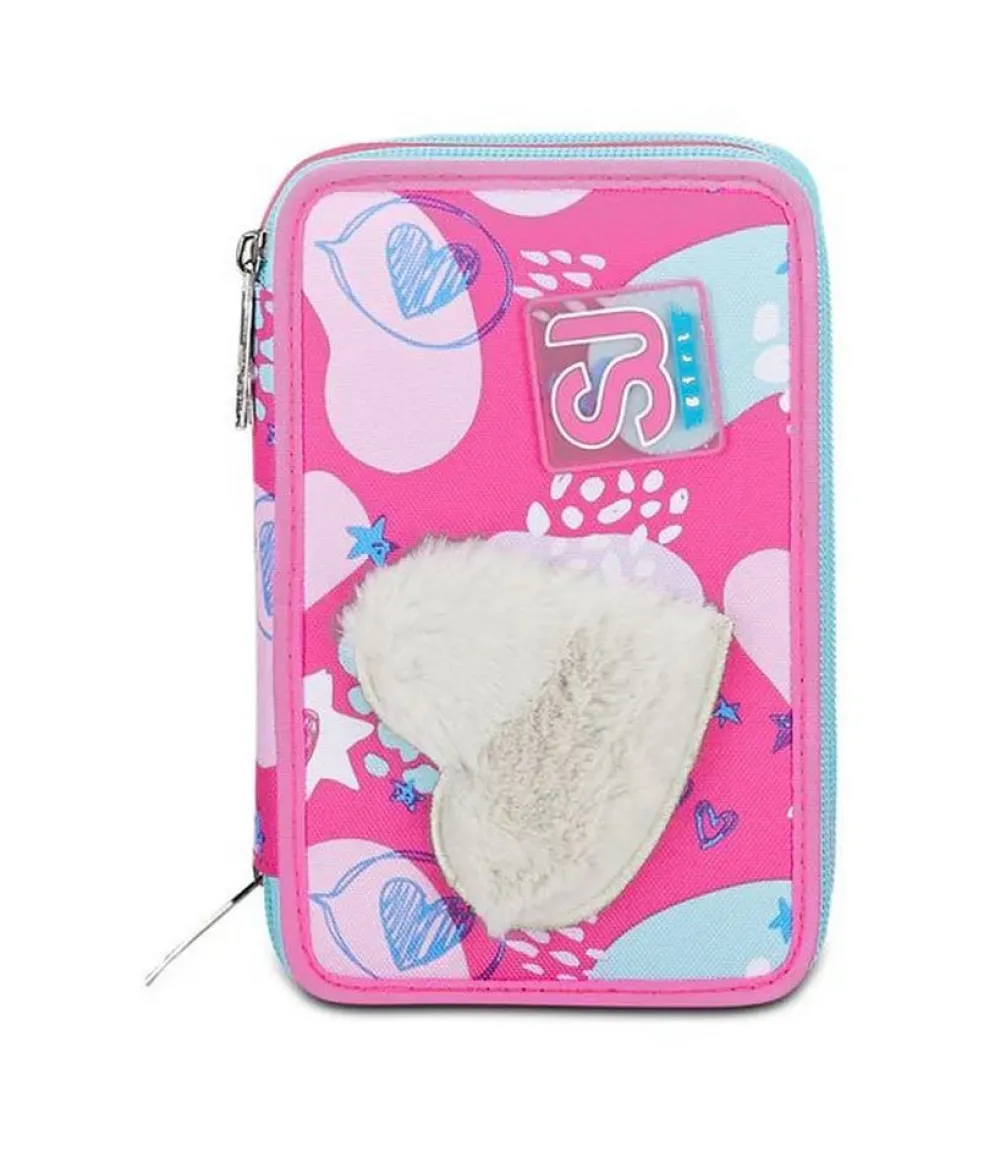 Astuccio per la scuola SJ Speed Case. Realizzato in robusto poliestere, con ampia tasca pirincipale chiusa da zip e divisorio interno. Completo di tutto l’occorrente per la scuola! Speed Case ha un sistema interno di plance amovibili, che consentono di rimuovere il contenuto per il lavaggio dell’astuccio.