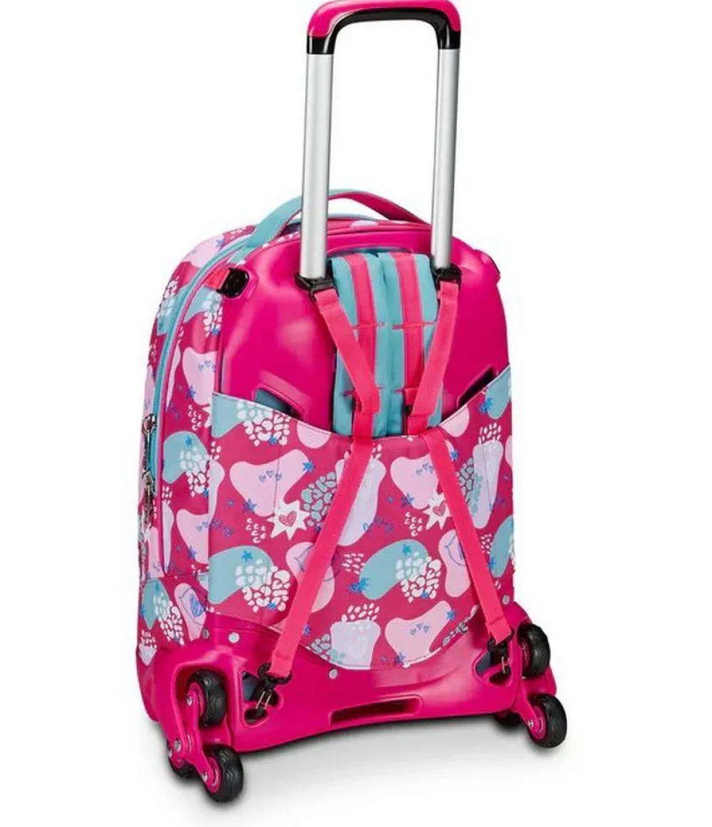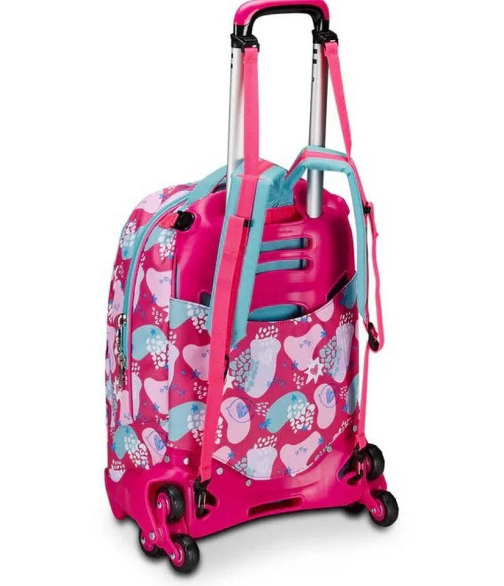 Trolley scuola Invicta New Plug. Zaino realizzato in robusto poliestere riciclato, schienale imbottito e rivestito in tessuto, spallacci imbottiti e traspiranti. Lo zaino New Plug di Invicta può essere comodamente sganciato dal carrello di traino, per la pulizia o per la portabilità a zaino. Il carrello di traino è rinforzato con push botton, il fondo rigido e le grandi ruote gommate e silenziose. Ampia tasca principale e tasca frontale chiuse da zip. Il nuovo sistena Crossover System consente di trascinare il trolley senza sporcare gli spallacci: quando solleverai la barra telescopica di traino gli spallacci si alzeranno in maniera automatica!