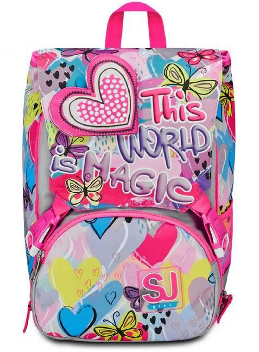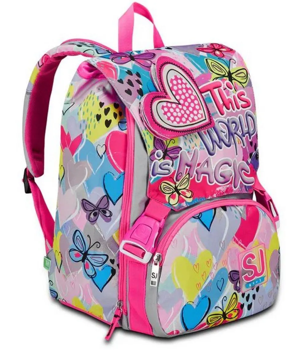 Zaino scuola SJ Advanced. Zaino realizzato in robusto poliestere, schienale in Ergosystem preformato, spallacci imbottiti e traspiranti, maniglia di servizio superiore. Tasca frontale organizzata. Tasca laterale porta borraccia. Garanzia 4 anni.