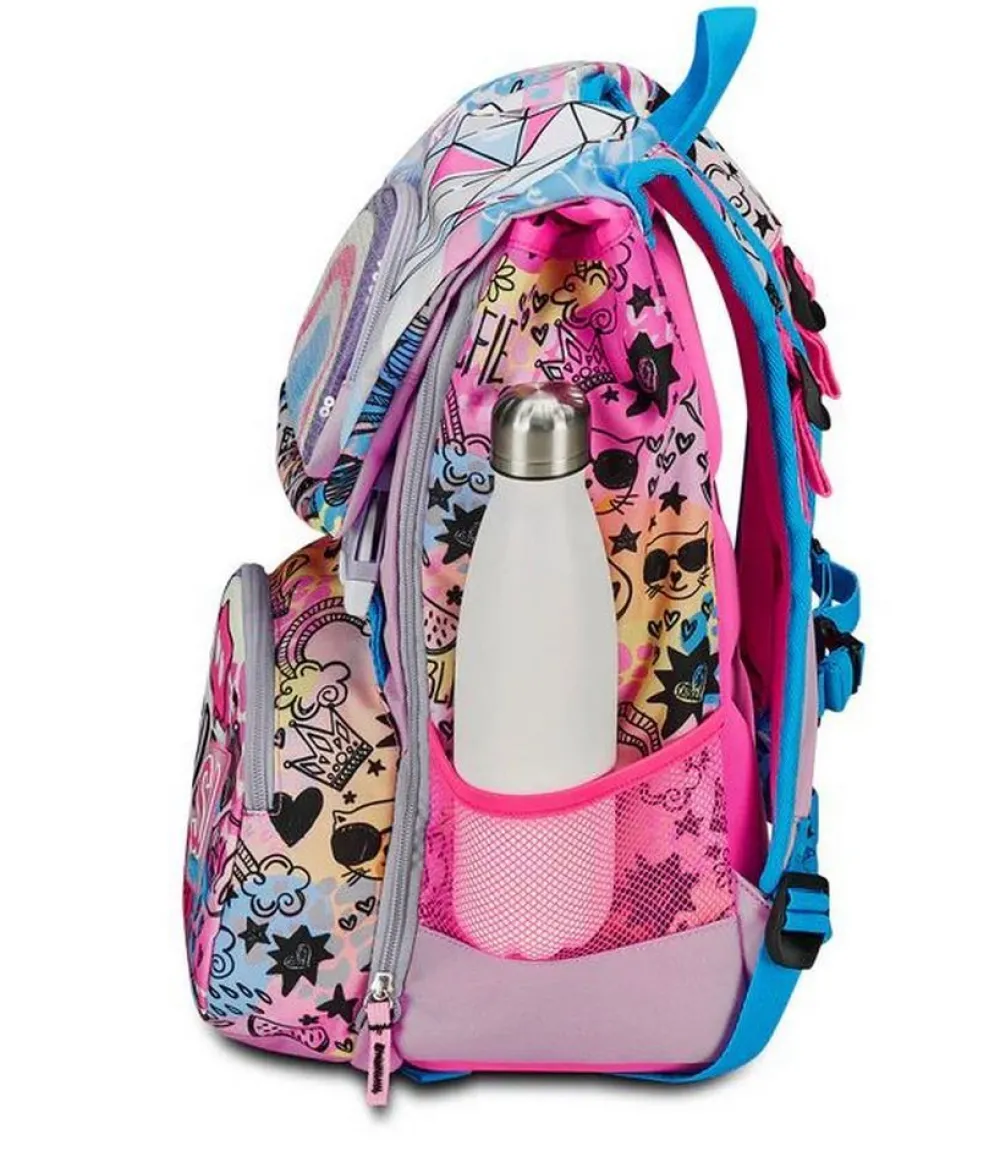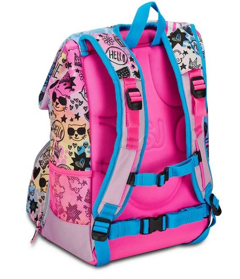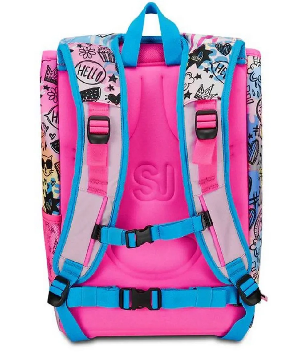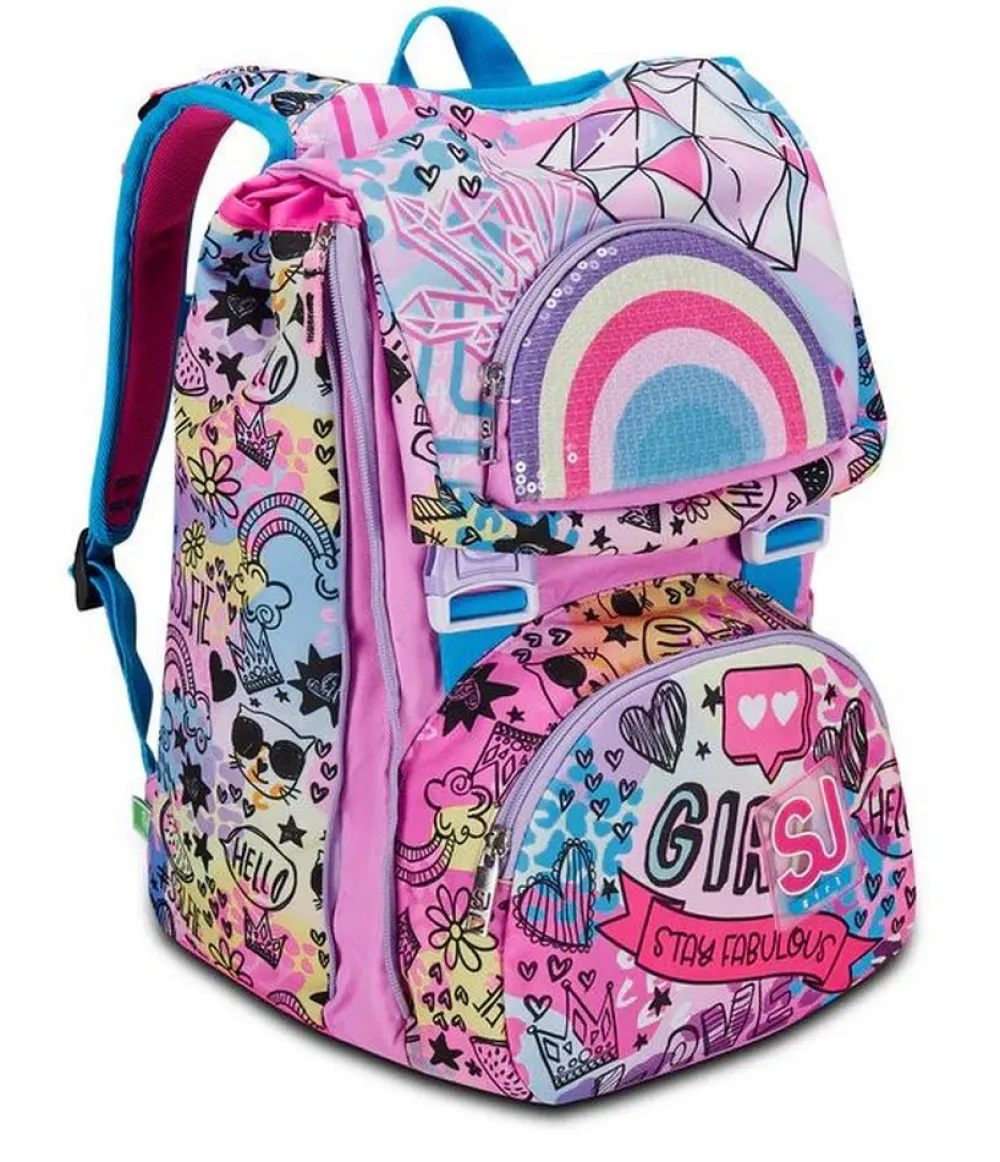 Zaino scuola SJ estensibile Big. Zaino realizzato in robusto poliestere, schienale in Ergosystem preformato con fondo integrato, spallacci imbottiti e traspiranti. Tasche frontali per piccoli oggetti. La zip di espansione laterale consente di aumentare o diminuire la capacità , a seconda delle esigenze. Le nuove fibbie a sgancio rapido sono semplici ed immediate.