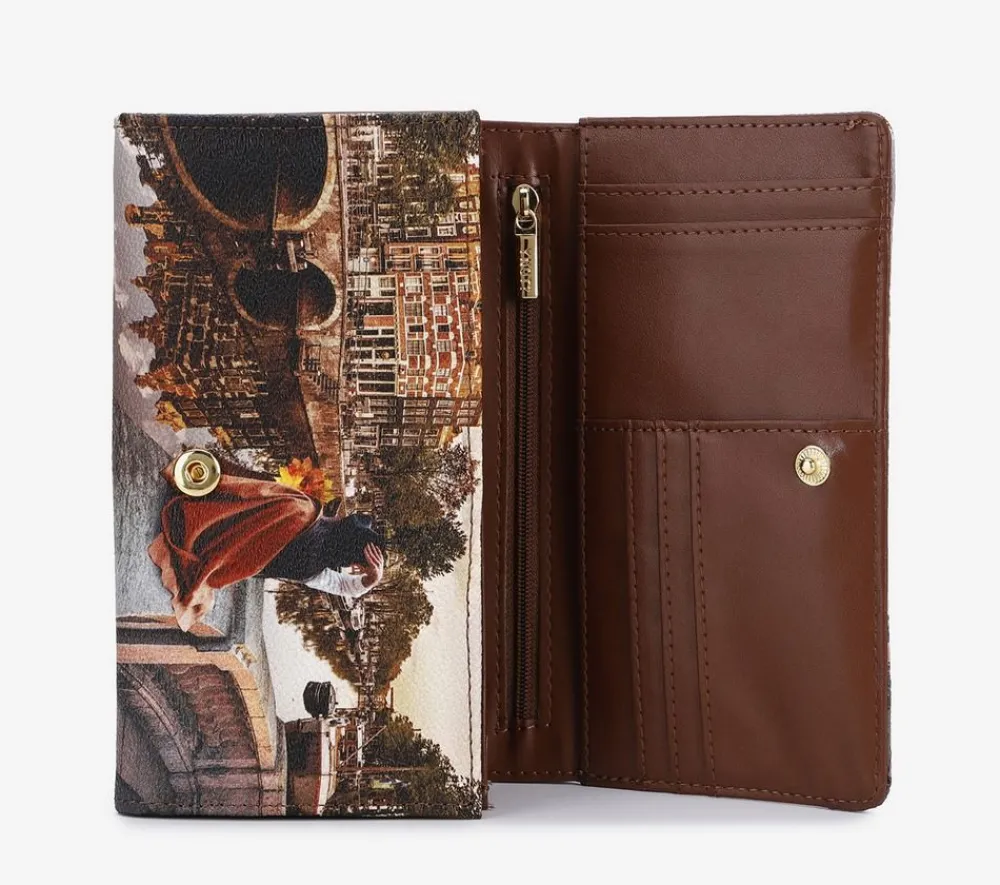 Portafoglio donna Ynot? 364. Realizzato in robusto PVC, patta chiusa da bottone, soffietti per banconote con tasca chiusa da zip per monete.